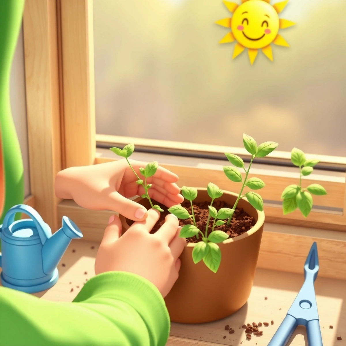 Теперь поставьте горшочек на светлый подоконник, но не под прямые солнечные лучи. Представьте, что семечко – это малыш, которого только что уложили спать. Ему нужно много света, но яркое солнце может его обжечь.